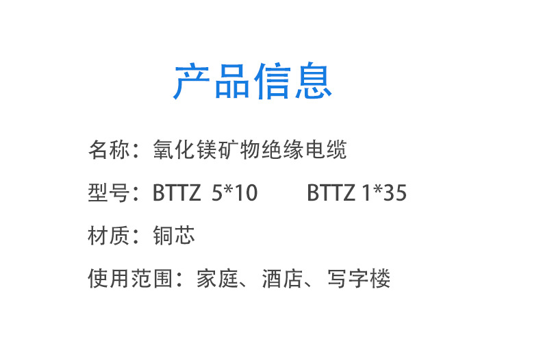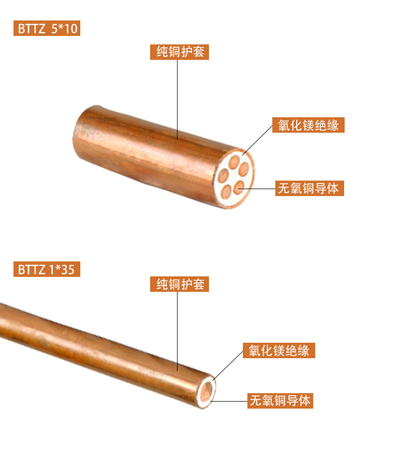 Bttz Mineral Insulated Fire-Resistant Cable, With A Rated Voltage Of 0.6/1Kv, Is A National Standard Multi-Strand Copper Core Wire For Power