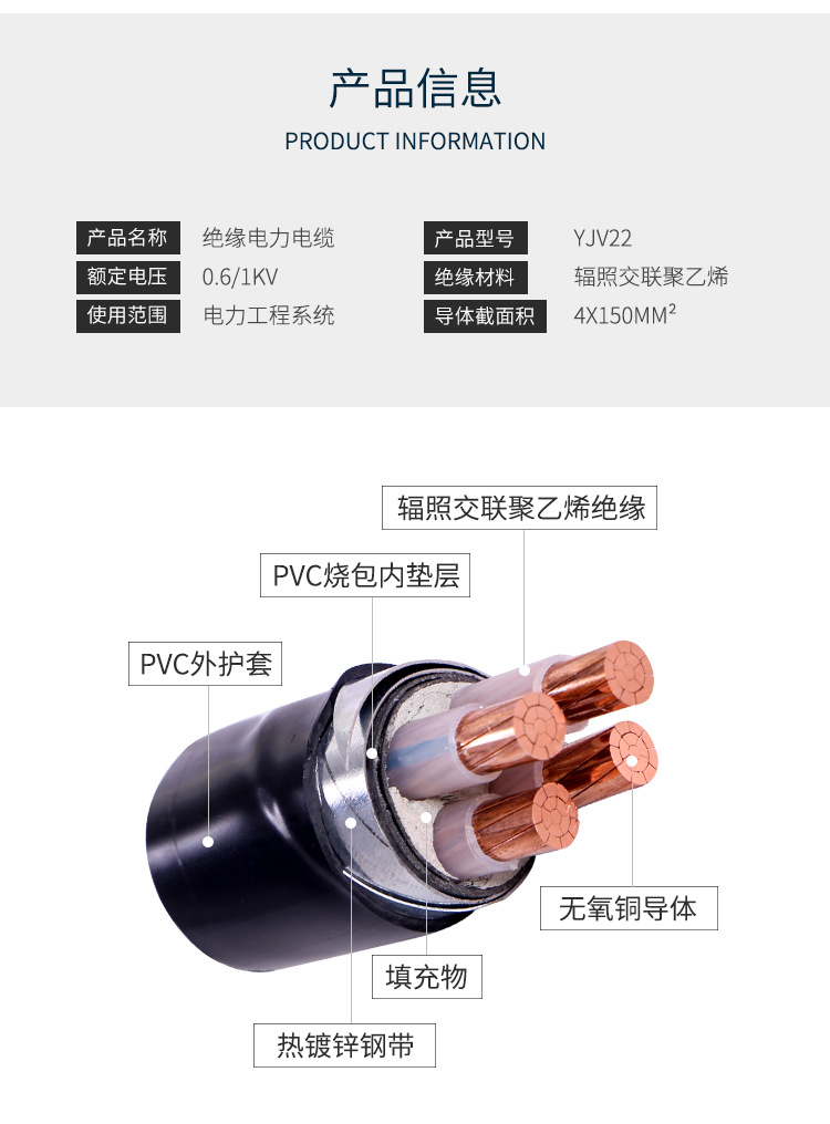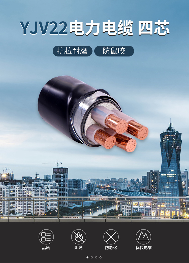 Customized National Standard Yjv22 Four-Core Insulated Power Cable With Rated Voltage (0.6/1Kv) And National Standard Certification