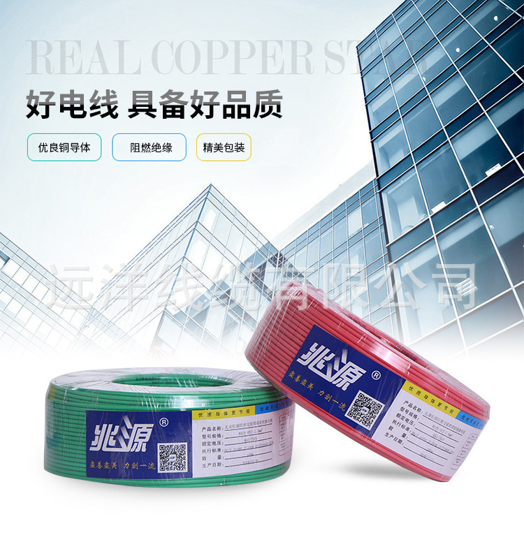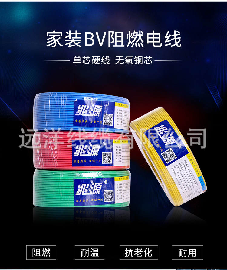 Customized Processing Of Zhaoyuan Brand National Standard Bv Flame-Retardant Wire 1.52.54 Square Copper Core Cable Is Flame-Retardant And Safe