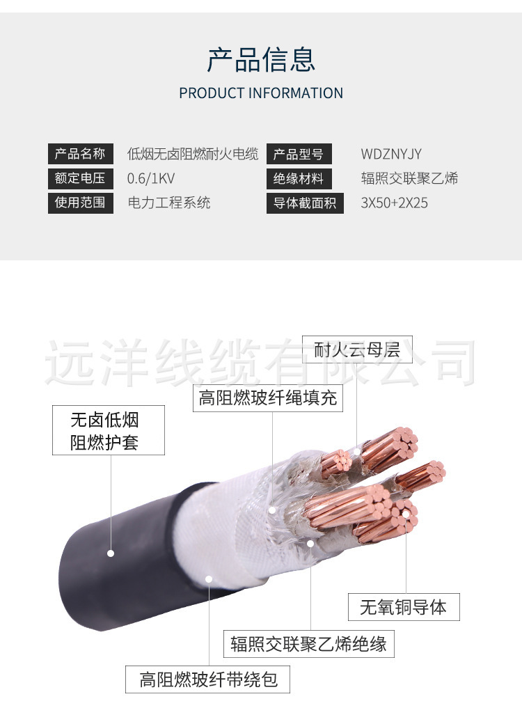 Wdznyjy Low Smoke Zero Halogen Flame Retardant And Fire-Resistant Cable Four-Core Rated Voltage (0.6/1Kv) National Standard Cable
